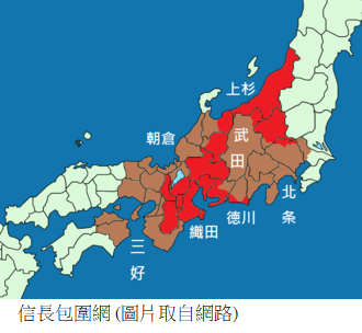 不過淺井、朝倉猶如導火線點燃各地反信長的勢力,著名的「信長包圍網」在1570年揭開序幕,織田軍疲於應付各地戰局,1572年隨著武田信玄加入包圍網,反信長的聲勢達到最高峰,但1573年初信玄病逝,「信長包圍網」產生裂痕,整個局勢開始風雲變色,信長先是率軍擊潰足利義朝,室町幕府滅亡(但京都舊勢力依然存在,一直到1588年義朝臣服於豐臣秀吉,才正式卸下將軍一位);接著信長率兵攻打淺井長政,朝倉義景率領兩萬名士兵前往救援,結果信長出兵殲滅馳援淺井的朝倉軍,最後朝倉義景自焚而死,名門朝倉家也因此滅亡;緊接著信長急襲小谷城進行圍城攻略戰(史稱小谷城之戰),最終淺井久政、長政父子切腹自盡,淺井氏滅亡,自此近江完全納入信長的掌握中。這之後,信長在琵琶湖畔築起了安土城作為其統一天下的據點,但由于明智光秀的謀反,安土城最終也在戰亂中被燒毀。