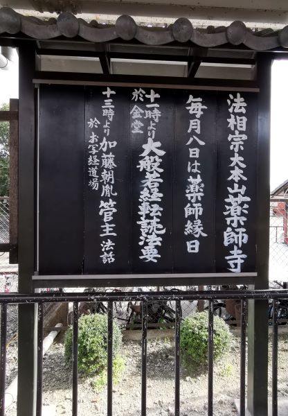 日本法相宗大本山之一的「藥師寺」,位於奈良市西部地區、平城京之西,故也稱「西京寺」,自古以來是重要的宗教中心,為南都七大寺之一,其他六寺分別為興福寺、東大寺、西大寺、元興寺、大安寺、法隆寺。七寺之中藥師寺與興福寺並為日本法相宗大本山,據說在平安時代,為了祈求神祇賜福,京都朝臣間流行巡拜南都七大寺,進行朝聖之旅。