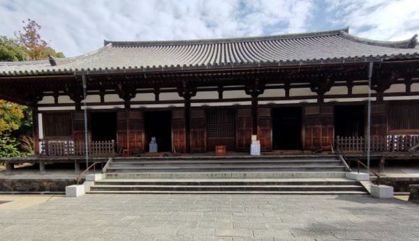 東院堂重建於鎌倉時代,是整座寺院內最樸素的建築,堂內供奉的是7世紀前後建造的銅造聖觀音菩薩立像,這尊微笑的菩薩,體態豐腴圓潤,薄衣貼體、下身衣裳具透視感且雙腿輪廓清晰,是受到印度笈多(Gupta)王朝的雕刻藝術影響。笈多王朝(四至五世紀)是印度佛教藝術的黃金時期,笈多時期的佛教造像融合西方與印度特色,創造了新的佛教造像藝術。