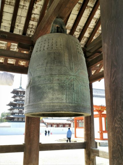 藥師寺「鐘樓」內的梵鐘為古銅鐘,是日本重要文化財。