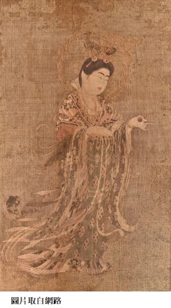 藥師寺的《吉祥天圖》是畫在麻布上,大約繪製於八到九世紀之間,為現存最古老的千年膠彩畫,畫的描摹對象為天平時代的光明皇后。從畫中吉祥天的頂上高髻、豐腴面容、柳眉櫻唇等特色,可看出當時日本繪畫深受唐代繪畫的影響。