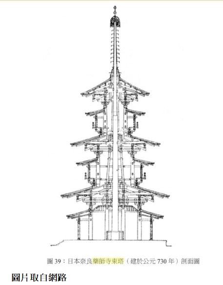 東塔雖然建於奈良時代(年代僅次於法隆寺塔),卻完全按白鳳樣式建造,是現存唯一一座白鳳樣式的古塔。在古印度,塔是婆羅門教埋葬往生者遺骨的墳塚,後來成為佛教特有建築,日本的塔是飛鳥時代隨著佛教從中國和朝鮮傳入,以木構樓閣式塔為主,建築技術受中國傳統建築影響,採用剎柱式結構,塔頂並沿襲了唐塔高大的相輪塔剎的設計,建塔之先必先立剎柱,剎柱立於礎石上,貫穿塔身中央,再向上貫穿露盤、寶珠。心柱因為能分散和吸收地震帶來的能量衝擊,防震性比沒有心柱結構的塔強。
