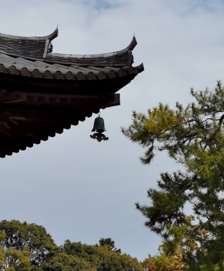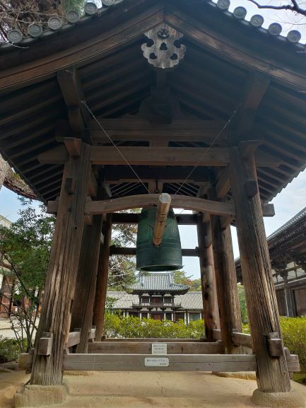 所謂「暮鼓晨鐘」,有鼓樓就有鐘樓,與鼓樓遙遙相對的另一邊,為單層建築「鐘樓」,鐘樓上掛的梵鐘是平安時代所製。