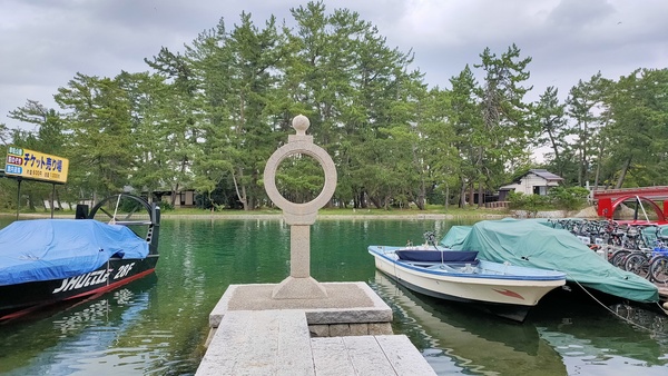 位在天橋立碼頭的「智慧之輪」,是江戶時代為了天橋立水路安全而設立於岸邊的燈籠。
