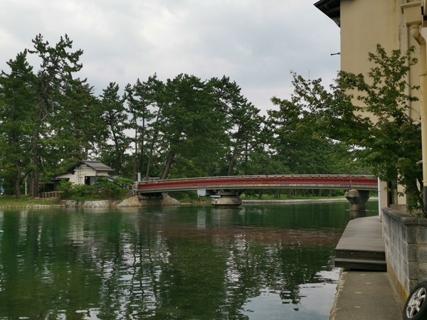 天橋立碼頭緊鄰一條河道,這是為了便利船隻進出阿蘇海,於是在天橋立南端挖掘出的人工河道,河道上面設置一座可以水平旋轉的機械橋「廻旋橋」。當船隻經過時,橋的半部分會旋轉90度,讓船通過。1923年建造時橋的轉動是手動的,1960年5月才修建成為電動迴旋橋。