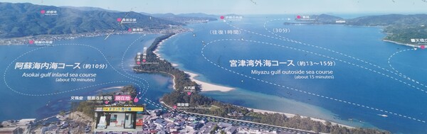 離開智恩寺,我們就從南岸的天橋立碼頭搭上觀光船,前往北岸的碼頭,導遊建議先在售票處購買日本版蝦味先,航行時可以在船上餵海鷗,這真是有趣的體驗,因為這些海鷗的技術很好,叼走蝦味先時只會感覺到衝力,不用擔心會啃到手。