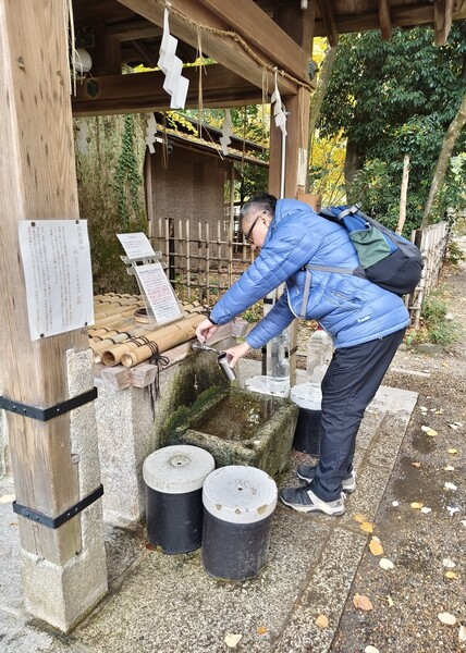 Day2,「COFFEE BASE NASHINOKI」是隱藏在梨木神社裡的一間咖啡館,特別的地方是環境和水。被綠意包圍的空間,氛圍愜意靜謐;沖煮咖啡的水取自梨木神社內的染井井水,染井井水是京都三大名水之一,也是三大名水中唯一現存的。