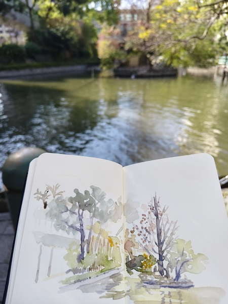 於是決定到院區內的忘憂湖畔淡彩速寫