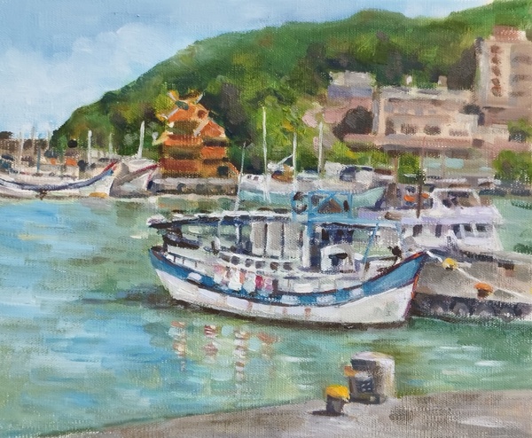 10月初,在低氣壓和東北季風共伴效應帶來的持續豪大雨前,我們頂著熱到厭世的豔陽天到金山磺港漁港寫生,這個地方是之前寫生回程路上意外看見的美景,那次就決定了這次的寫生行!