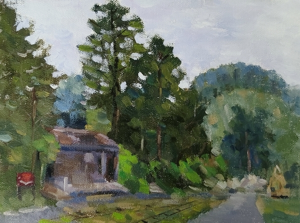 那三天,我們起早扛了畫架到車站寫生,到了7點,畫筆一擱,先去吃早餐(救國團活動中心的早餐很豐富),用餐後,再回木棧月臺繼續畫畫!