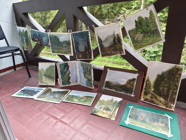 附上一張想留念的“晾畫”照片,我們三個太瘋寫生了,從清晨畫到黑夜,二天的產量就有這麼多~
