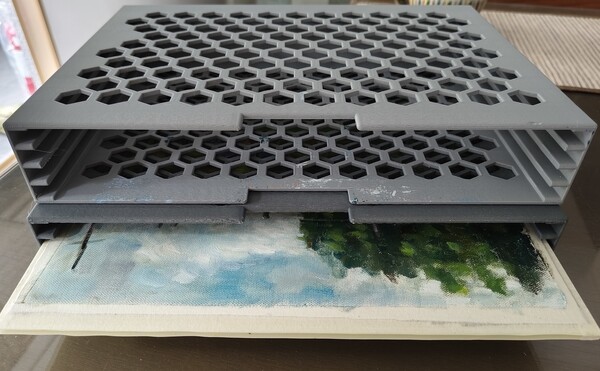 而為了這次的寫生旅行,畫友還幫我們用3D列印製作了大小二個濕畫框,一個框可以放4片珍珠板,正反就有8張畫布,也就是說畫好畫滿16幅!再加上水彩,這次可說是魔鬼訓練營!!(不過因有事,我只參與一半行程)