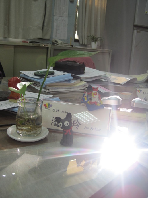 那坐他前面看他的我啊是哪根蔥哪?這蔥是偷偷抓時間整理桌面微笑的我啦!