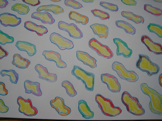 我初七回到台中的家,很想念粉彩筆的觸感,就拿起筆,一畫就畫這些雲朵....覺的貞的有女兒說的那種噁心感,一團團一團團......