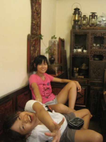 兩個女兒一臉準備要在放假結束前好好,阿公阿嬤家過一個豬一樣的日子,