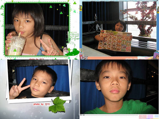 九八年七月十七 哇!今天出來吃飯是姨婆請我們來吃的,可是我們很早就起來我們到家樂福的餐廳,大家就開始點餐,看了單子好多東西可以吃喔!看來大家都點好了。我们先聊天聊到一半剛好東西剛好東西都送來了,東西看起來好好吃喔 !我本來吃拿坡里珍珠蝦球焗飯,媽媽就點披薩給我吃。後來飲料也送來了看到冰沙飲料好好喝喔 ! 我們大家都吃飽了我們四個小孩子就跟姨婆說謝謝姨婆請我們吃好吃的午餐。