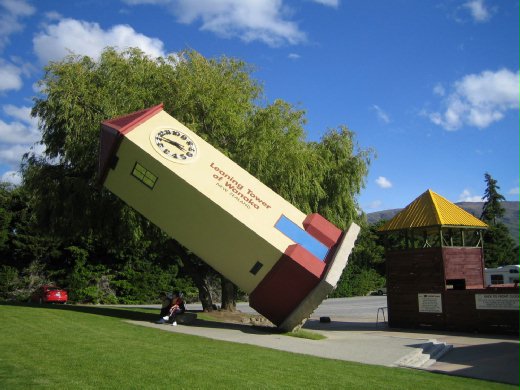 這天行程來到了瓦娜卡小鎮,司機DAVE告訴ERICA說:到瓦娜卡之前有一個地方叫PUZZLING WORLD,非常有趣值得前往,尤其是它的廁所很特別,要去嗎?ERICA問:要額外付費嗎?DAVE說:除了3D室及迷宮要門票外,在遊戲間及使用廁所是不需要付費的。ERICA一聽不用錢,二話不說當然是去囉!