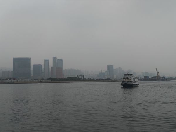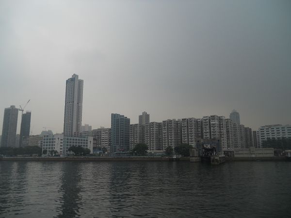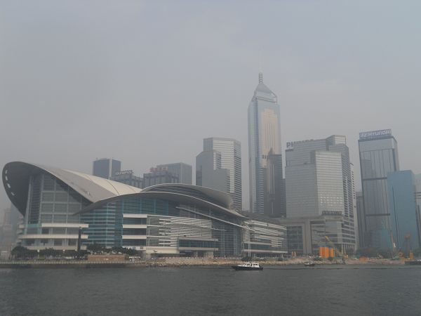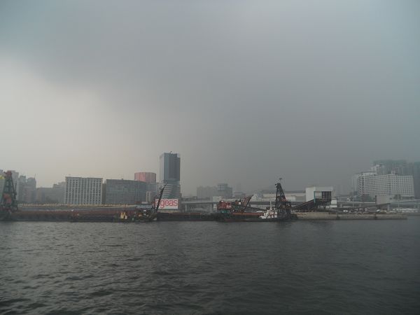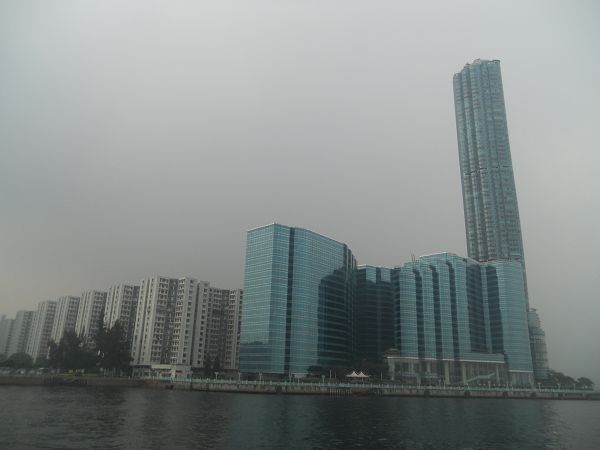 乘遊艇遊遠眺香港九龍灣國際展覽貿易會務展示中心