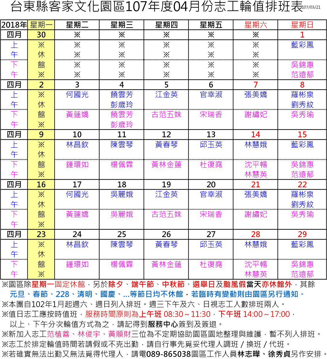 b4256661@nwldx.com園區星期一休館,除夕、端午節、中秋節、選舉日亦休館。其餘元旦、春節、228、清明節、國慶日等節日均不休館。地址:池上鄉新興村新光路1號