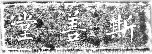 因 病去世,悲痛不已,乃在其墳前石供桌前沿,親筆手書「斯善堂」三