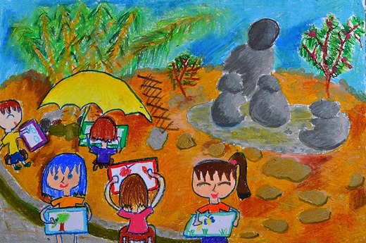 才小學五年級, 能把蠟筆的色調 溶合的這麼乾淨細膩,