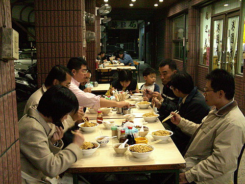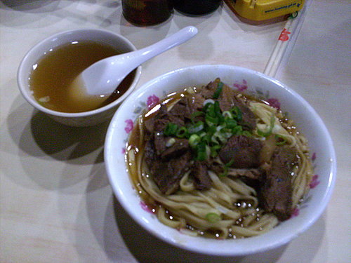 此時靈機一動,大軍帶往華王飯店斜前方的港園牛肉麵,順便將家小請來作陪,這家牛肉麵店天天高朋滿座,有人曾告訴我說,他認為這家牛肉麵店是高雄最好吃的!是否如此,見仁見智,但是的確不差!如果沒猜錯,麵是掺了豬牛油去拌,共六種選擇:牛肉麵、肉絲麵與豬腳麵﹝再分拌麵與湯麵﹞,湯汁濃郁,恐怕膽固醇不低!不過不怕,在座有多位中醫師呢!