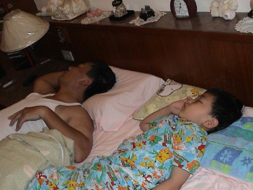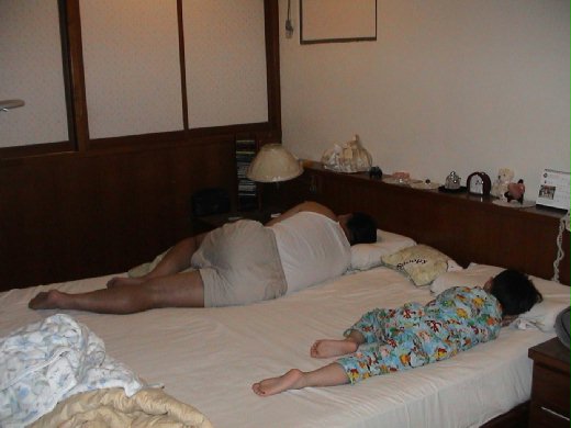 我老婆每每因為我跟小朋友的一致睡相惹得狂笑不已,那天她突發奇想,把睡相照下來,證明果然是我們家的基因遺傳產品!