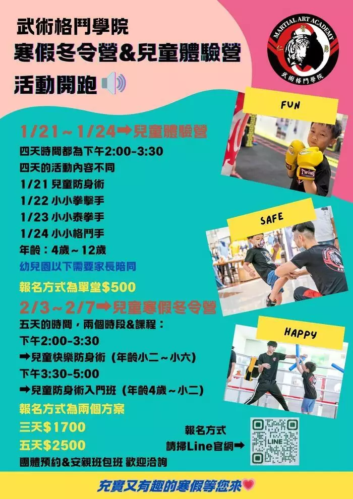 今年寒假武術格鬥學院專為孩子設計的寒假冬令營&兒童體驗營正式開跑!孩子們一放假就想懶洋洋待在家,不妨來武術格鬥學院體驗超有趣又刺激的寒假限定活動,安全的環境下快樂學習,身體動起來都暖和了,這個寒假不怕冷!