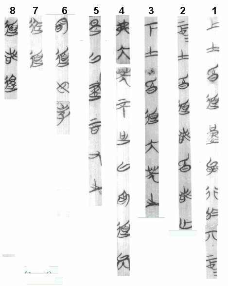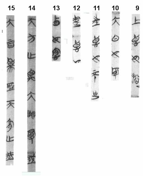 「上士聞道,勤而行之;中士聞道,若存若亡;下士聞道,大笑之,不笑不足以為道。故建言有之,明道若昧,進道若退,夷道若纇,上德若谷,大白若辱,廣德若不足,建德若偷,質真若窬,大方無隅,大器晚(免)成,大音希聲,大象無形道隱無名,夫唯道善貸且成。」