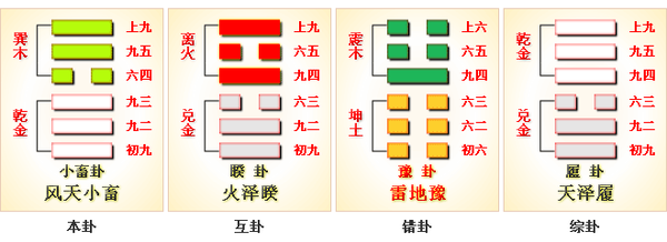 小畜是本卦標題。 畜的意思是田地裡穀物滋生,草木茂盛。 卦像是表 示天的「乾」和表示風的「糞」相疊加,卦辭、爻辭主要講農業生活。 本卦標題是根據內容加的。
