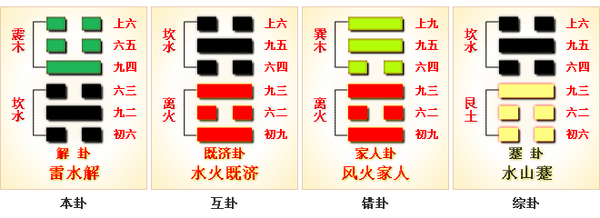 ①解是本卦的標題。 解的意思是分解,解除。 全卦內容主要講商旅、狩獵和俘虜。 標題的「解」字為卦中多見詞。