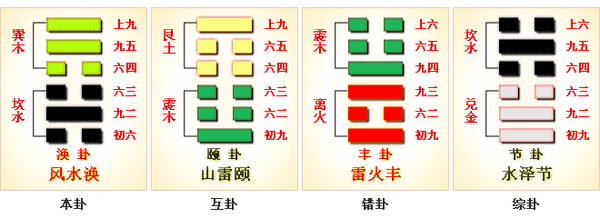 ①渙是本卦的標題。 渙的意思是洪水。 全卦的內容是講水災水患。 標題的「渙」字與內容有關,又是卦中多見詞。