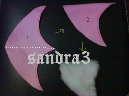 2.依圖板將絨毛布和不織布剪下(各2片,需預留缝邊空間)