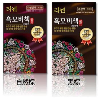 漢方15分鐘快速染 含有五方色原料 6種鎮定頭皮的成分 主商品 1 ReEn韓方御黑染髮霜 自然棕色或ReEn韓方御黑染髮霜 深棕色 4盒 每盒內含第1劑20g 3包 使用說明書 1 第2劑2 1919978