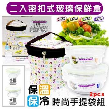 【台灣製造】2入圓形密扣玻璃保鮮盒時尚手提組 (R-100N)加送防焰膠帶