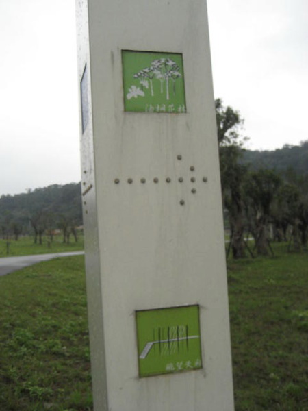 路標說:油桐花林。寄託未來;眺望的天廊,先賞遠景。