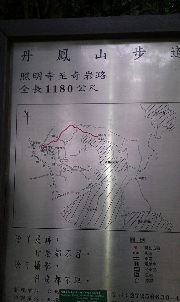 行程:8:40捷運石牌1號出口會合--軍艦岩親山步道陽明大學登山口--登上軍艦岩--照明寺休息--往丹鳳山續行--12點抵捷運北投站附近覓食.