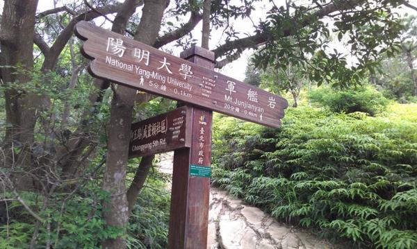 軍艦岩親山步道:於台北石牌榮總正北方.海拔185.6公尺.為台北大屯山系最南端著名山嶺.嶺上巨石2400萬年沉積的白色岩層.突出聳立在層層山巒間.為乍看如同海上艦艇而得名.