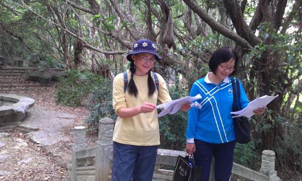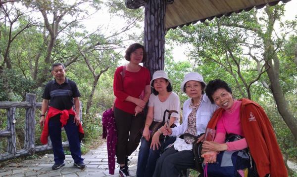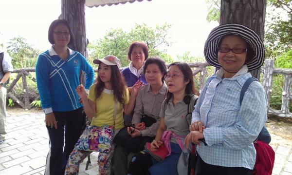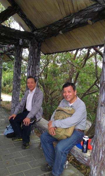 領導因感冒在照明寺休息時臉色發綠.又只能照走丹鳳山路徑下去.真難為他了.