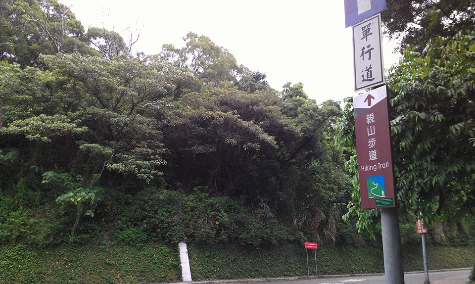 親山步道招牌+青翠樹木引領前行