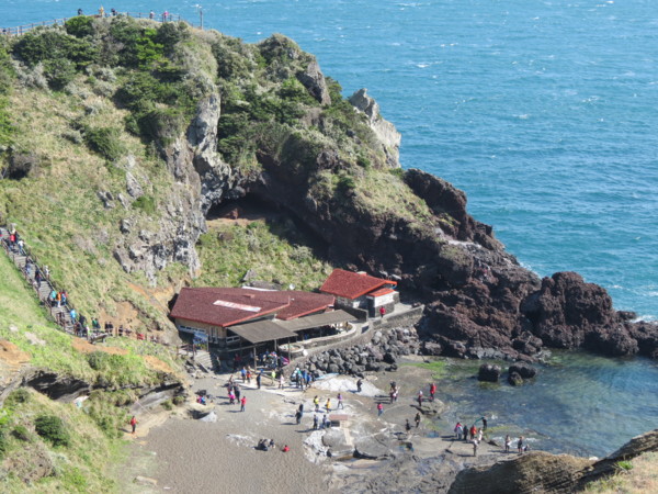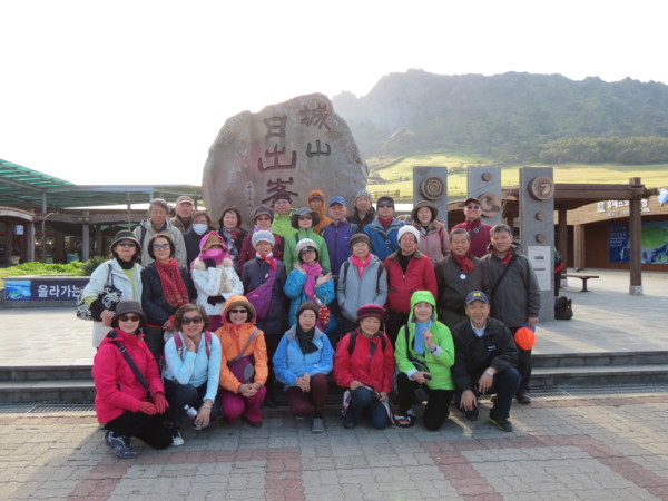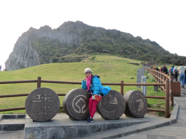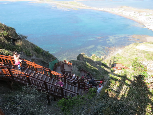 ◎城山日出峰是位於韓國濟州島東端的一個火山丘,海拔182米,由10萬年前海底火山爆發而形成。城山日出峰的火山口直徑達600米,深90米,面積達8萬多坪,是世界上少見的保存完整的海底火山丘。特殊的地理學意義和周邊美麗的景色使城山日出峰於2007年被聯合國科教文組織指定為世界自然遺產。在城山日出峰頂端上觀賞日出一直是濟州島美麗十大景緻之最,從蔚藍海岸水平線上緩緩升起的太陽濡染整片汪洋,如此美景只能用想像了。