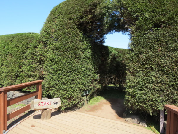 ◎金寧迷路公園是濟州大學退休美國籍教授F.H.Dustin創建的。F.H.Dustin教授退休後希望永遠生活在濟州島,於是他在1983年開始設計此公園。金寧公園的設計總共花了三年,樹苗是從1987年開始種植的。直到今天,教授還每天在公園裡歡迎著觀光客們。金寧公園是按照教授的構思來建造,而且每年增加新的項目建設。金寧迷宮的圍籬由2233株柏樹構成,防病抗寒能力極強的柏樹每年以1米以上的速度生長,所以公園每年要進行兩次以上的修剪工作,以保持美麗而有趣的迷宮形態。門票收入的20%作為公園管理之用,其餘的80%全數回饋社區