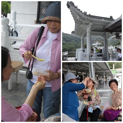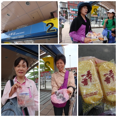 8:40永寧捷運站2號出口會合時各式點心立刻出籠.桂枝蘭嶼的餅.英秀的餅.美雲手作黑糯米糰.