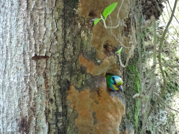 原來在拍五色鳥鑿樹洞..幸運的搶拍了1張.隨後牠怕人多飛了去..