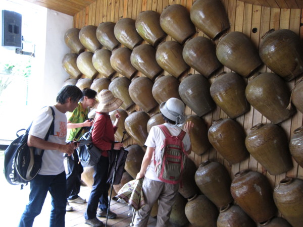 光廊裡的酒甕來自台灣菸酒公司樹林酒廠,因遷廠之故,600個具有歷史意義的酒甕,巧妙地變成了發光的裝置藝術。