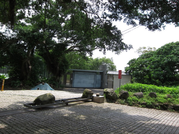 電動出入口閘門~生硬的鋼軌擺上幾顆巨石,變得饒富趣味