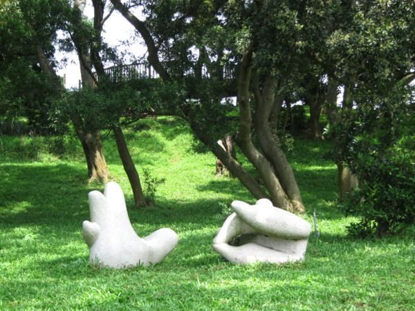 隨意放置的雕塑作品,讓你感受自然與藝術的交會共鳴