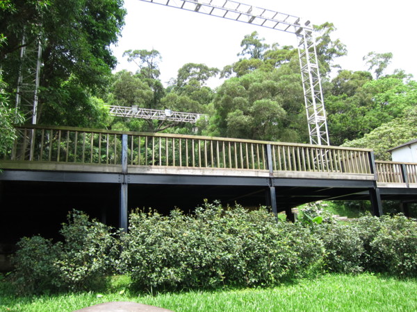 離地架起的空間為荒山劇場,再往前為林子裡的雕塑公園