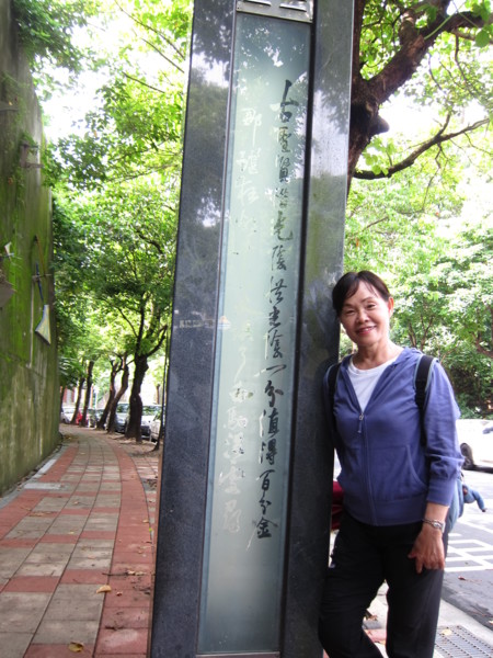 陽關道上22盞照明燈為建校22週年之紀念;燈上以細明體字型書寫勸學惜陰詩句,另面為行草
