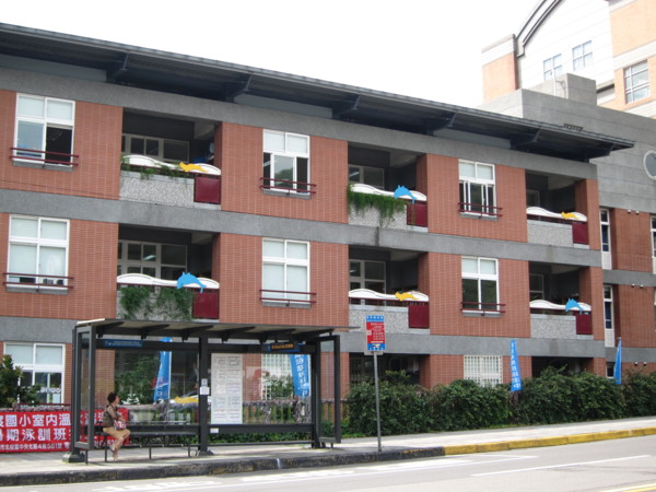 林木掩映中看見游泳館,阿伯心嚮往之